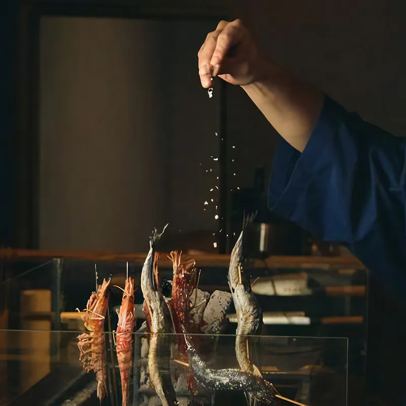 かまどで火入れをしており、旨味や香り・食感などふくよかな味わいをお楽しみいただけます。